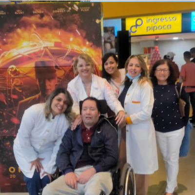 A ida de Edmar ao cinema foi uma iniciativa da equipe multidisciplinar da Assiste Vida que, atenta à um desejo do rapaz, providenciou todo o aparato necessário para o deslocamento dele em segurança. Um paciente com as limitações dele, exige um cuidado especial quando o assunto é passar algumas horas fora de casa; e foi por esse motivo que o rapaz já estava há pouco mais de seis anos sem ir ao cinema.